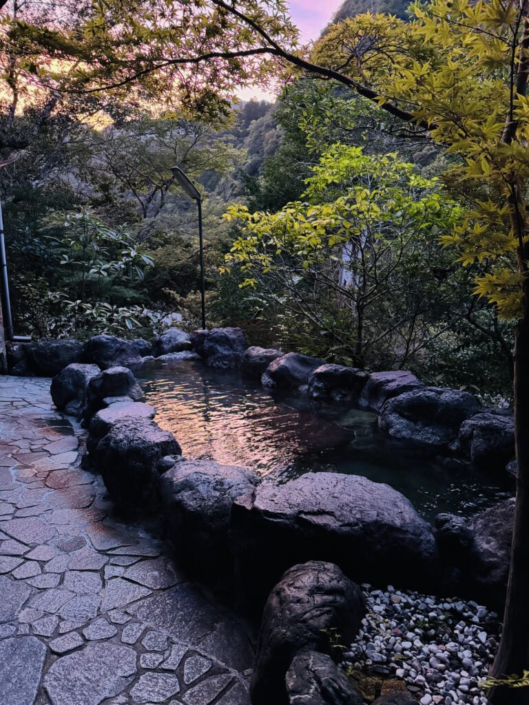 特におすすめなのは、夜更けの露天風呂です。川のせせらぎを聴きながら、微かな硫黄の香りに包まれるひととき。都会では決して味わえない「真っ暗な夜」と「澄んだ空気」が、あなたを日常から遠い場所へと連れ出してくれます。内風呂は24時間、心ゆくまでお愉しみください。